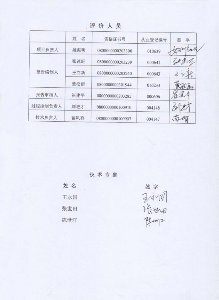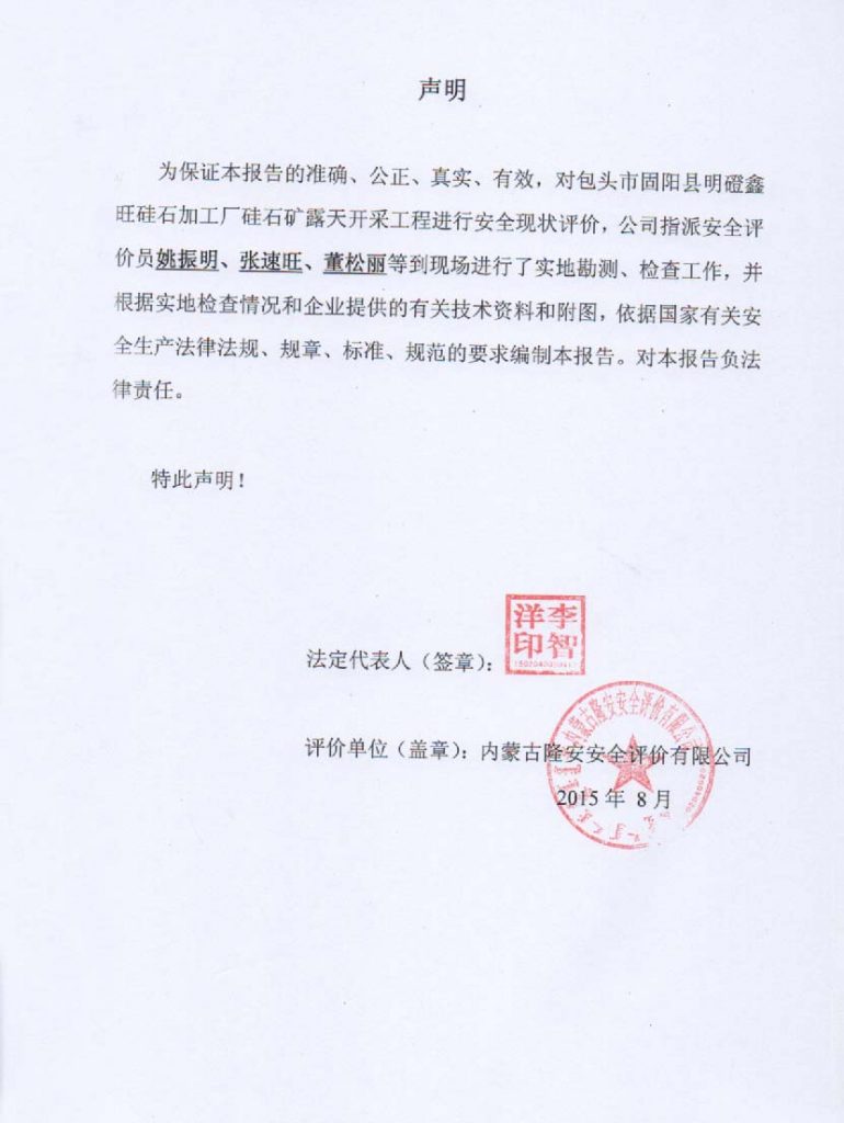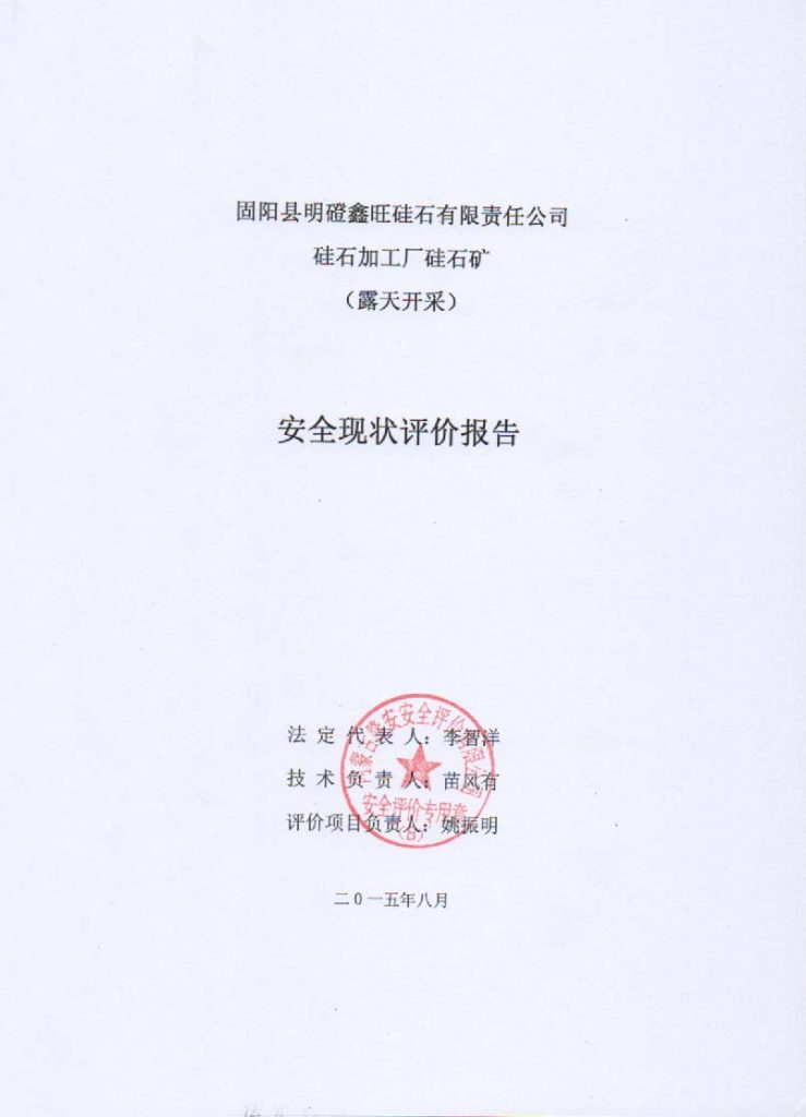 固陽縣明磴鑫旺硅石有限責任公司硅石加工廠硅石礦露天開采安全現(xiàn)狀評價報告–簽字表