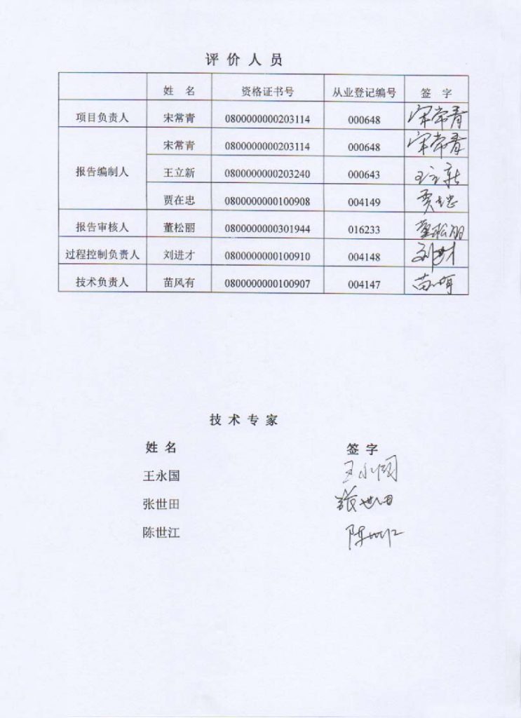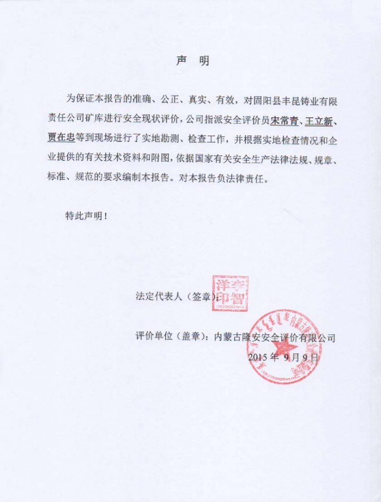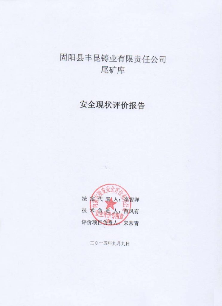 固陽縣豐昆鑄業(yè)有限責任公司尾礦庫安全現(xiàn)狀評價報告–簽字表