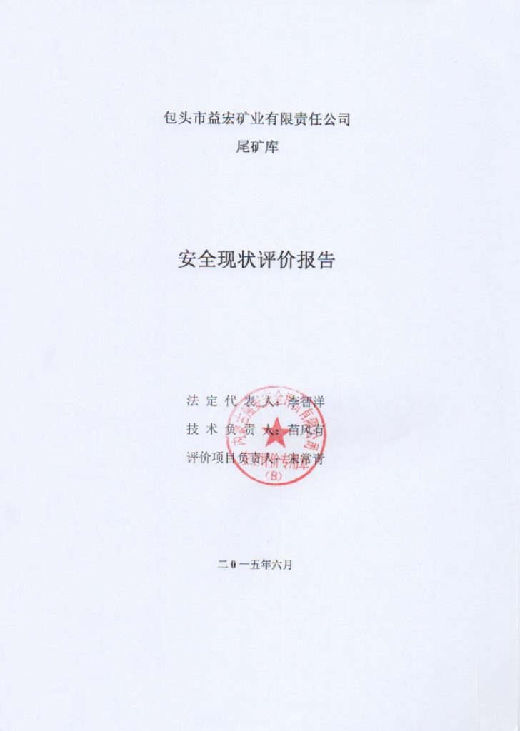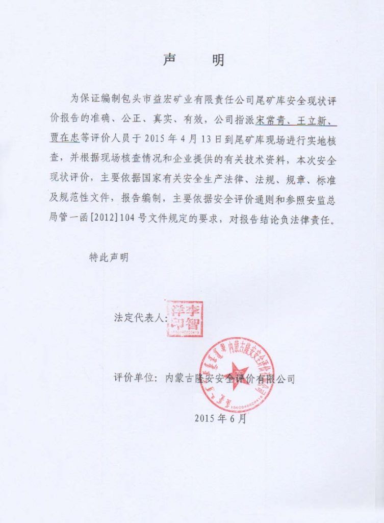 包頭市益宏礦業(yè)有限責任公司尾礦庫安全現(xiàn)狀評價報告–簽字表