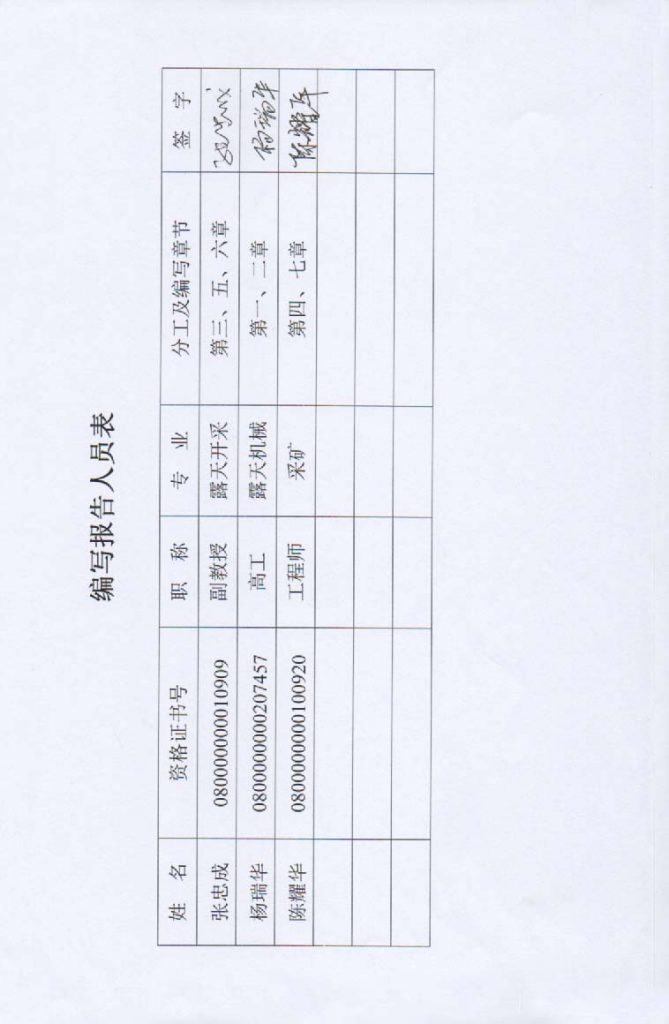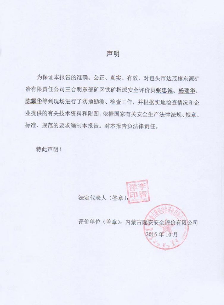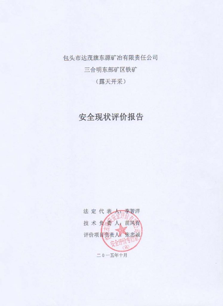 包頭市達(dá)茂旗東源礦冶有限責(zé)任公司三合明東部礦區(qū)鐵礦安全現(xiàn)狀評(píng)價(jià)報(bào)告–簽字表