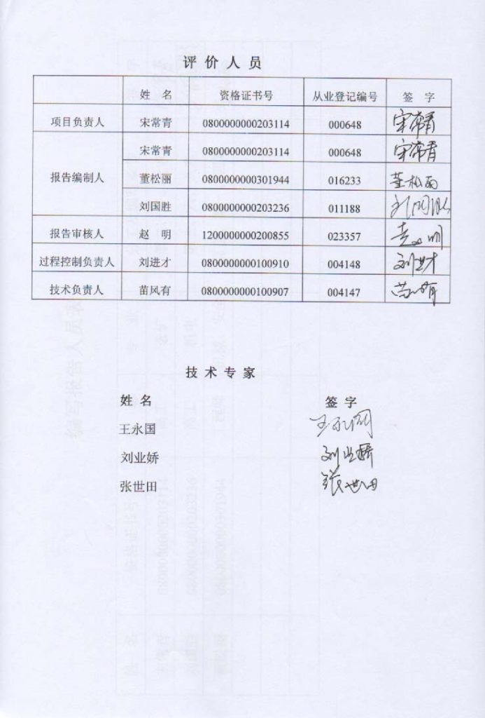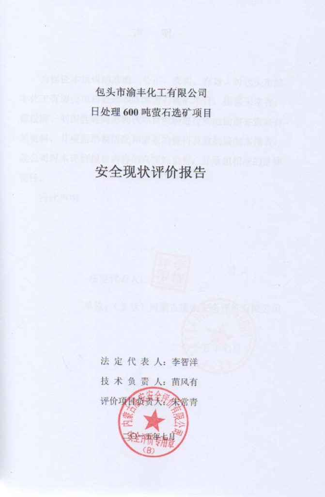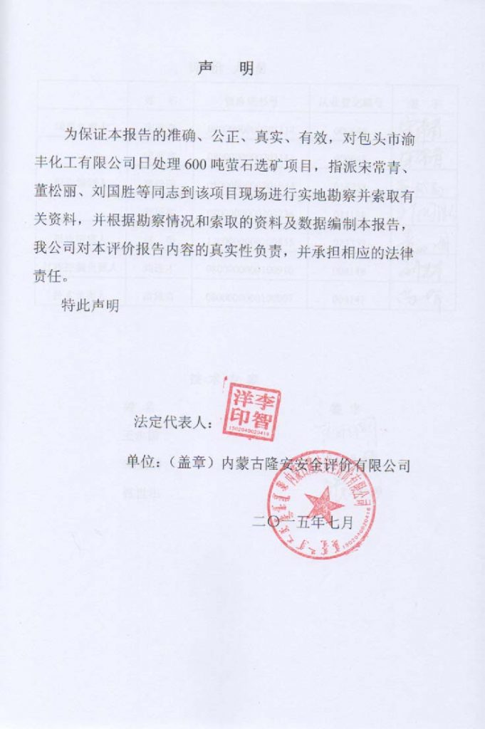 包頭市渝豐化工有限公司日處理600噸螢石選礦項目安全現(xiàn)狀評價報告–簽字表