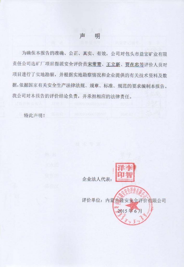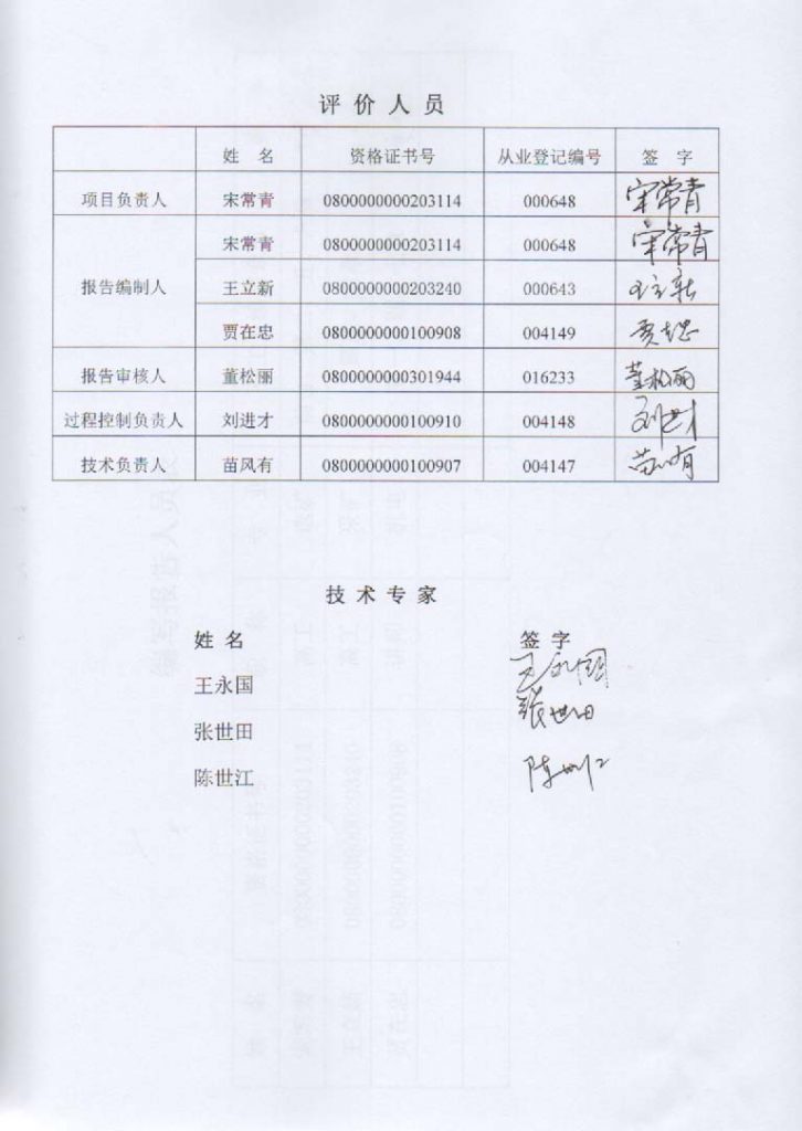 包頭市益宏礦業(yè)有限責(zé)任公司尾礦庫(kù)安全現(xiàn)狀評(píng)價(jià)報(bào)告–簽字表