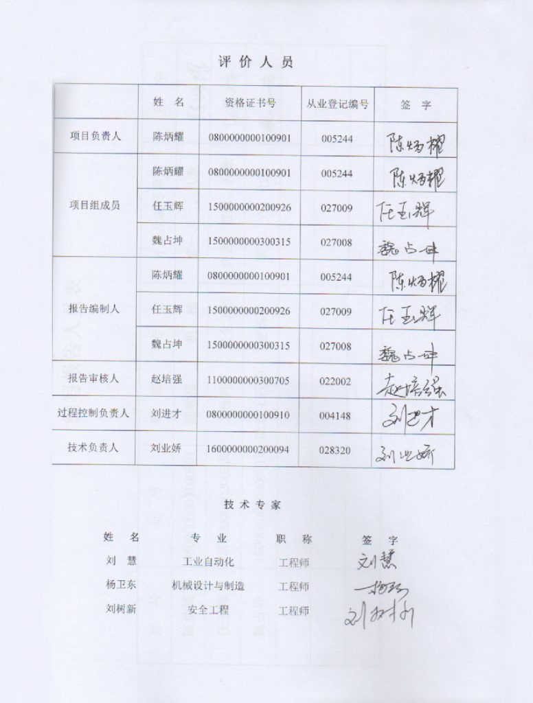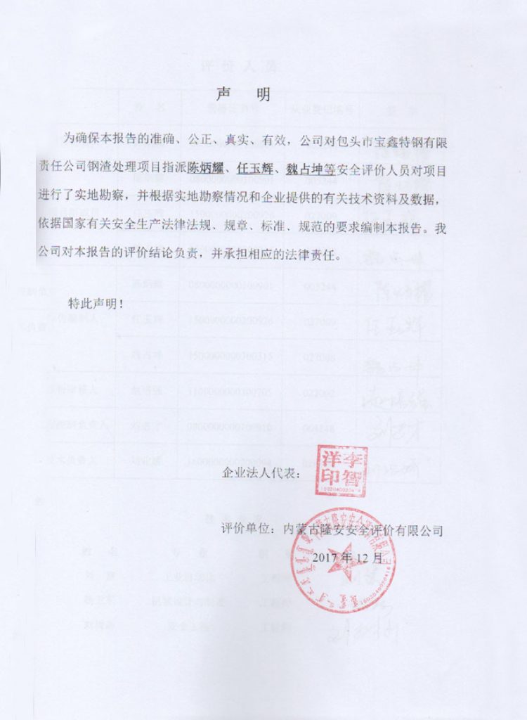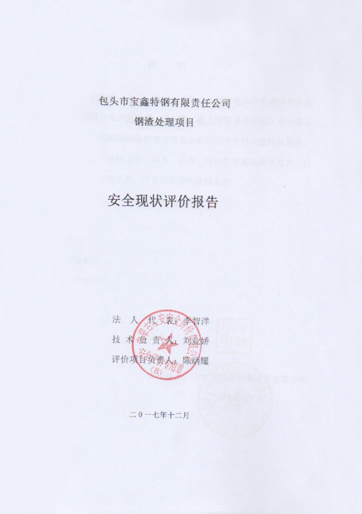 包頭市寶鑫特鋼有限責(zé)任公司鋼渣處理項(xiàng)目安全現(xiàn)狀評(píng)價(jià)報(bào)告–簽字表