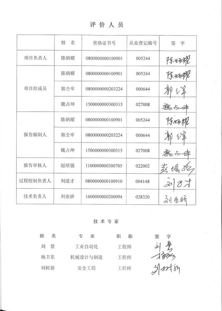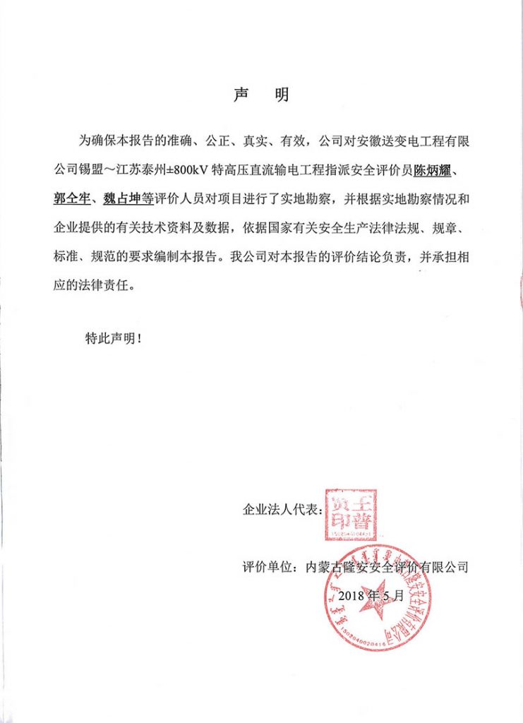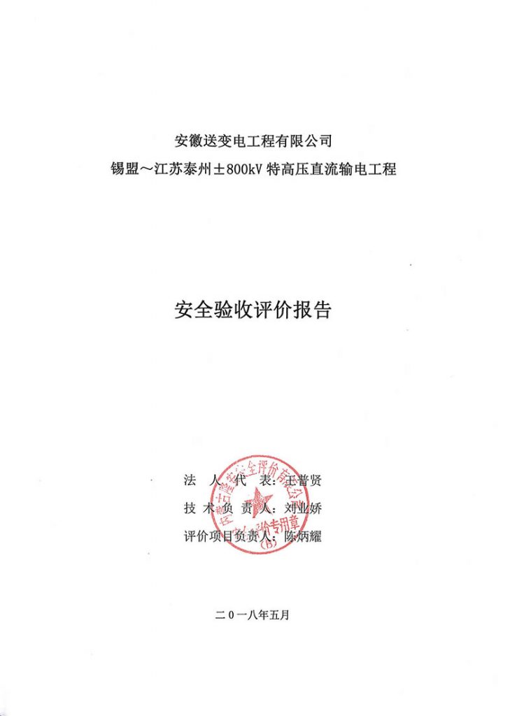安徽送變電工程有限公司錫盟~江蘇泰州±800kV特高壓直流輸電工程安全驗(yàn)收評價報告–簽字表
