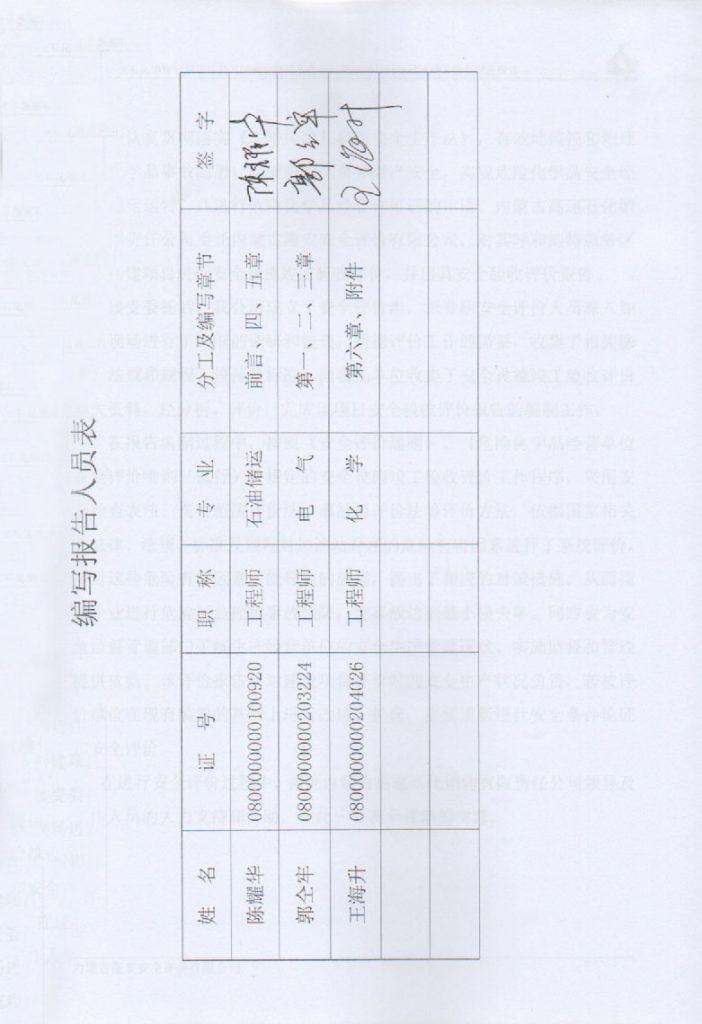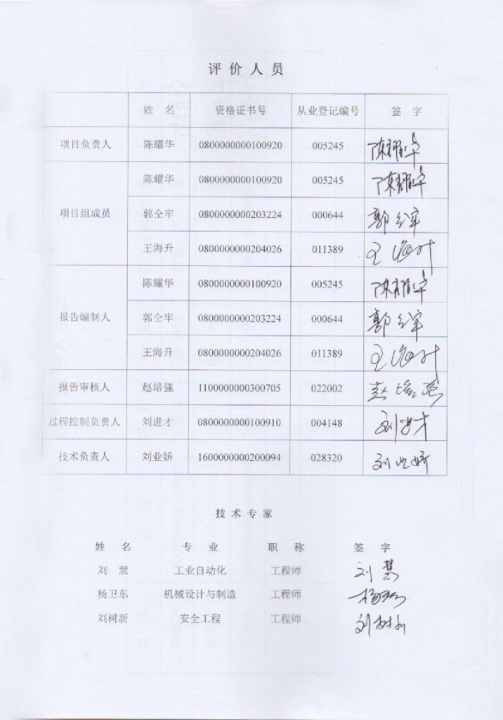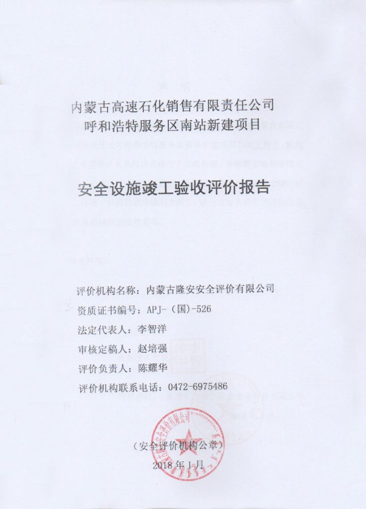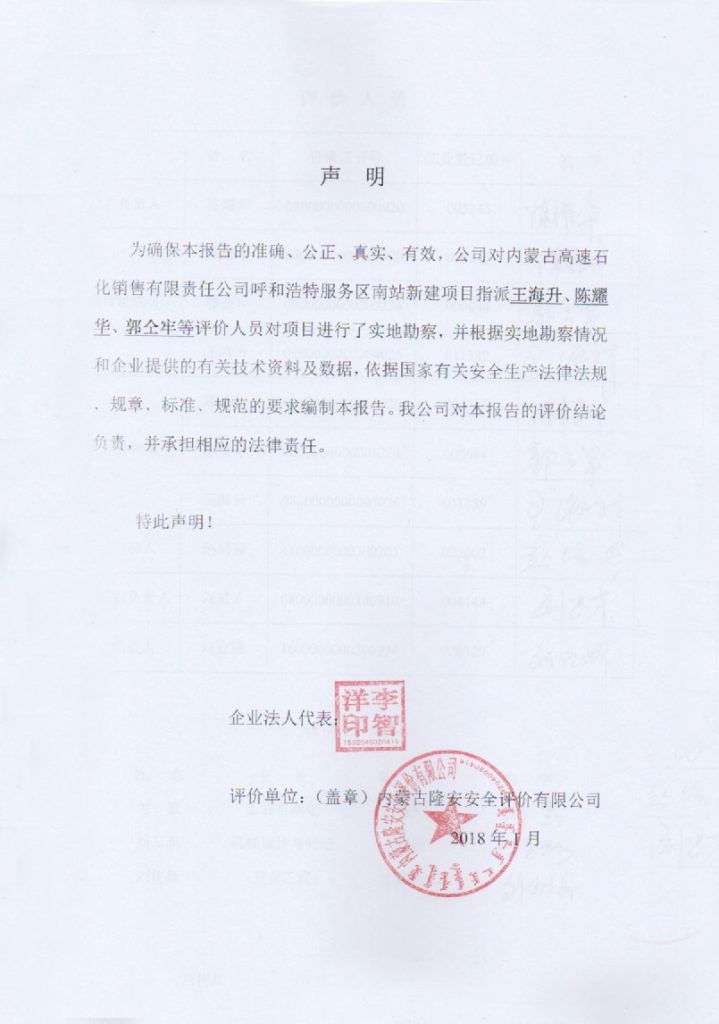 內(nèi)蒙古高速石化銷售有限責(zé)任公司呼和浩特服務(wù)區(qū)南站新建項目安全設(shè)施竣工驗收評價報–簽字表