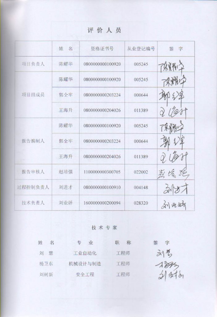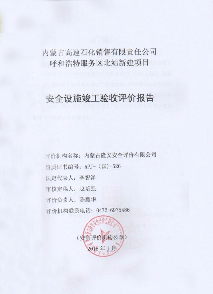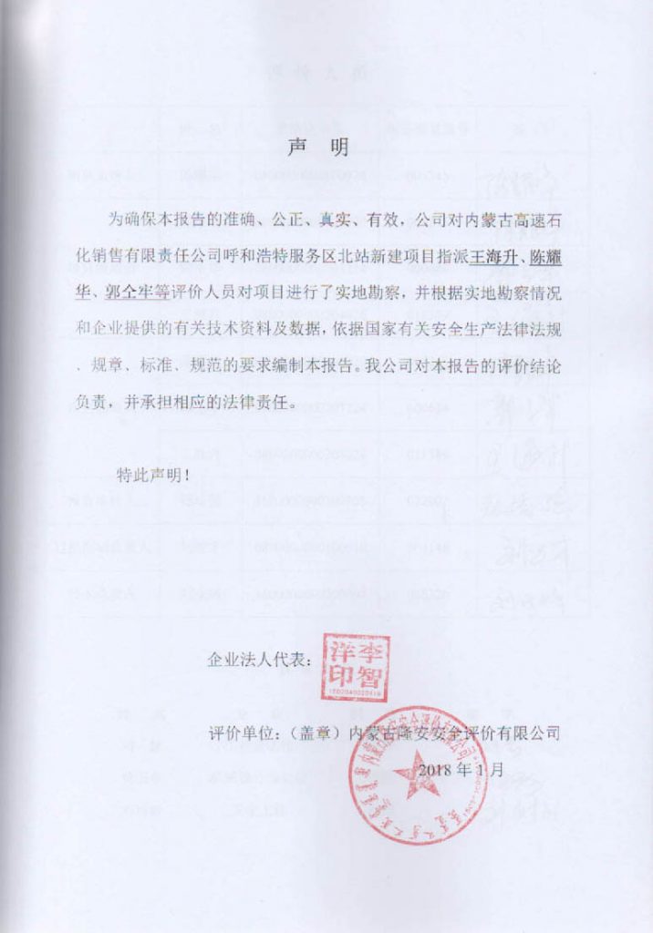 內(nèi)蒙古高速石化銷售有限責任公司呼和浩特服務區(qū)北站新建項目安全設施竣工驗收評價報告–簽字表