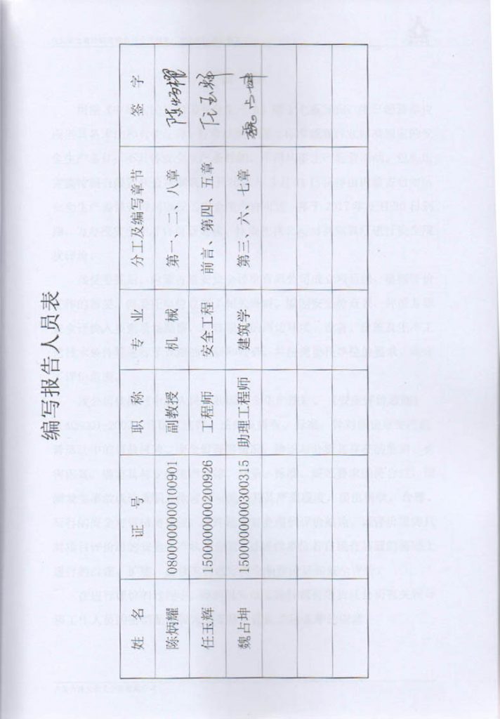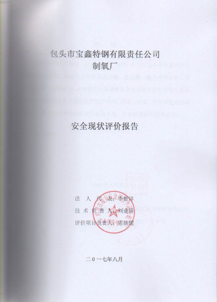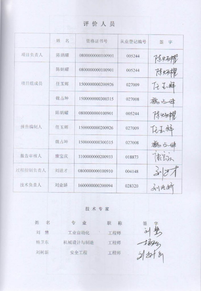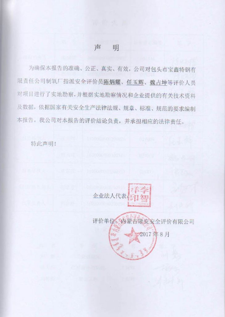 包頭市寶鑫特鋼有限責(zé)任公司制氧廠安全現(xiàn)狀評價(jià)報(bào)告–簽字表
