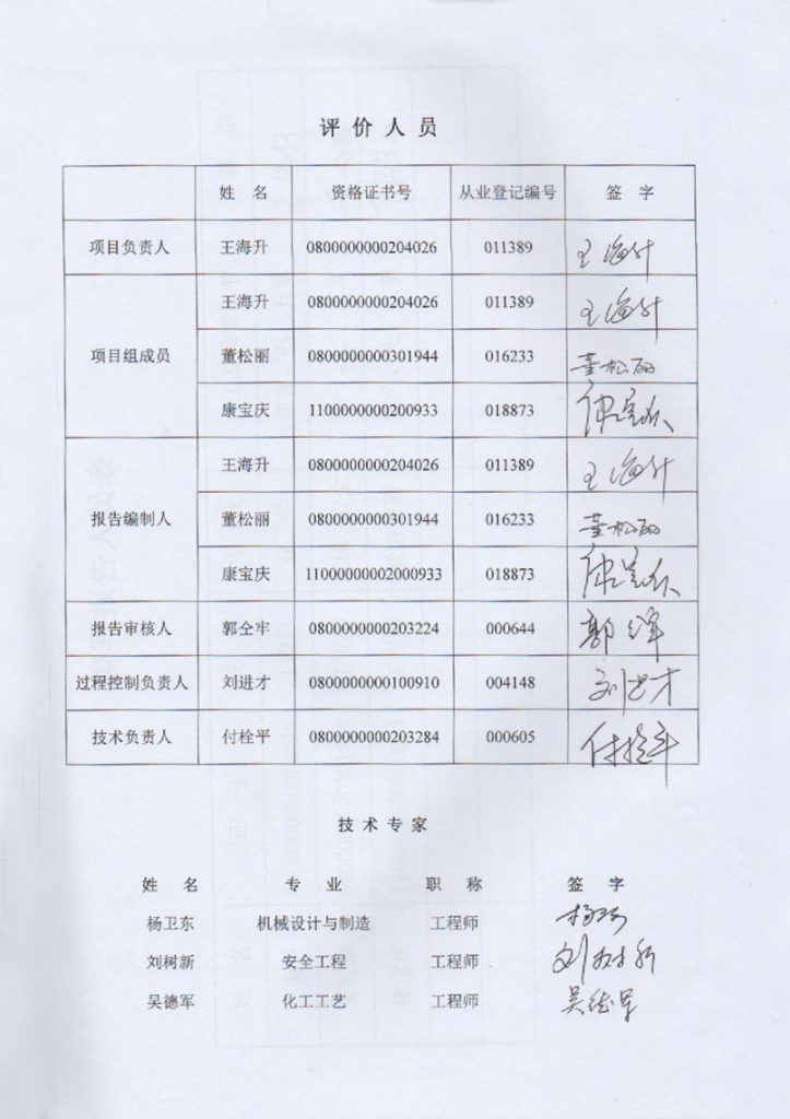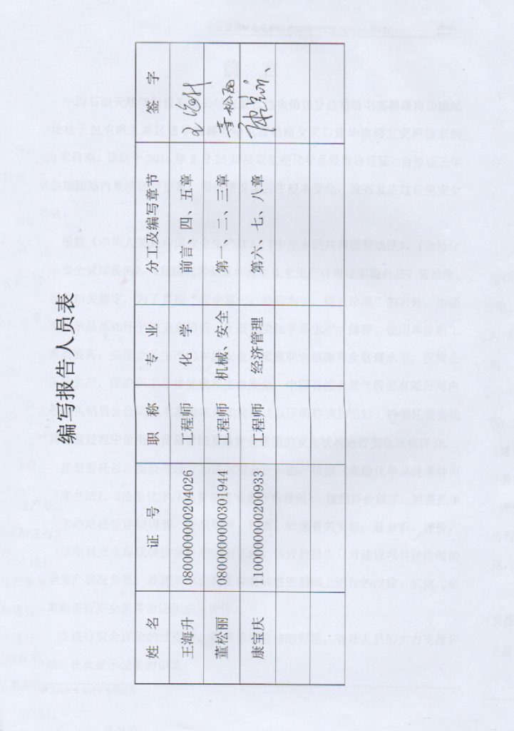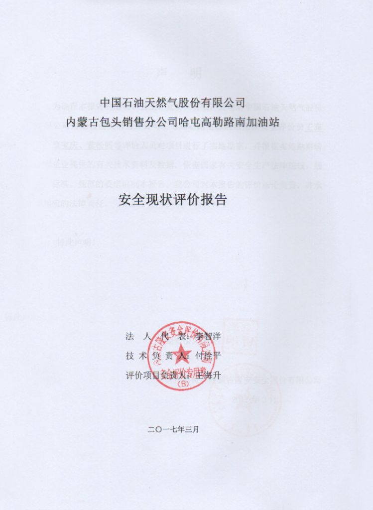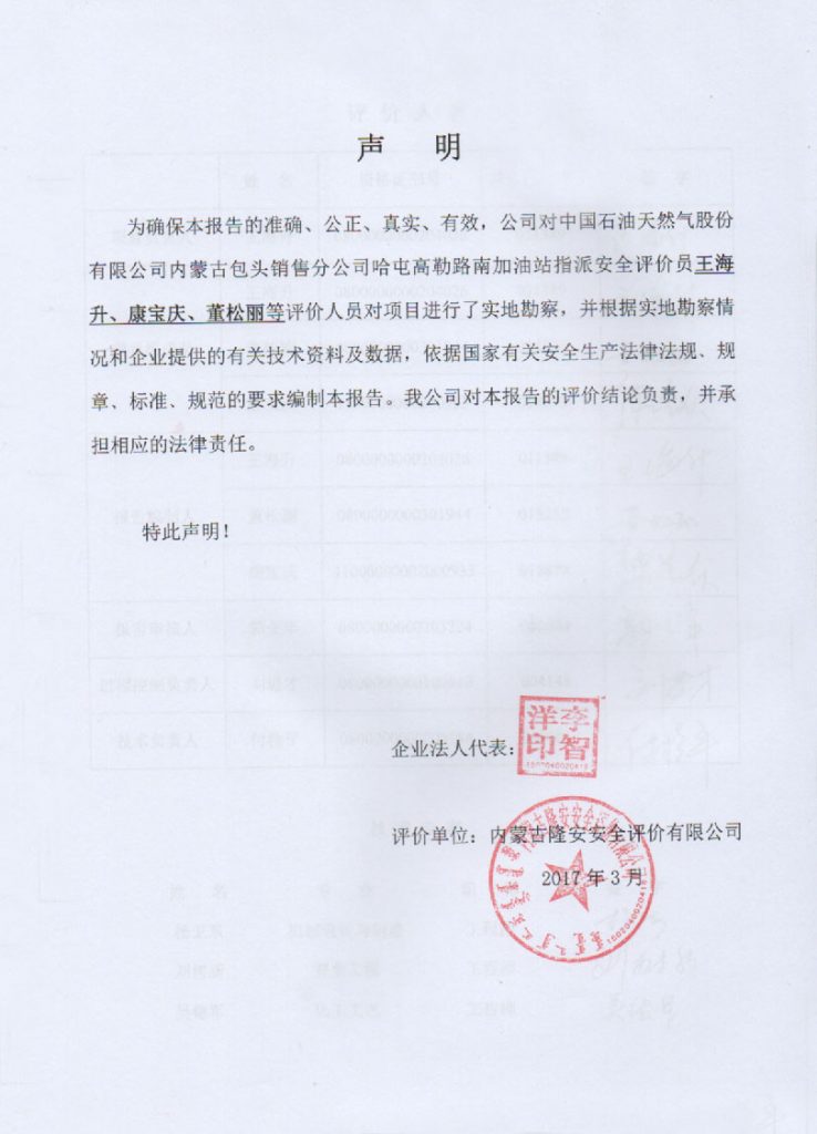中國石油內(nèi)蒙古包頭銷售分公司哈屯高勒路南加油站安全現(xiàn)狀評價報告–簽字表