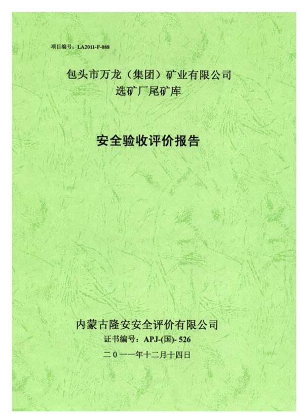 包頭萬(wàn)龍(集團(tuán))尾礦庫(kù)驗(yàn)收評(píng)價(jià)
