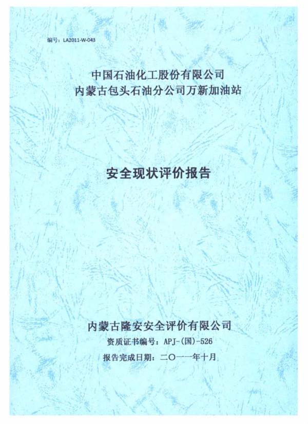 固陽(yáng)縣中建石油有限公司加油站安全現(xiàn)狀評(píng)價(jià)