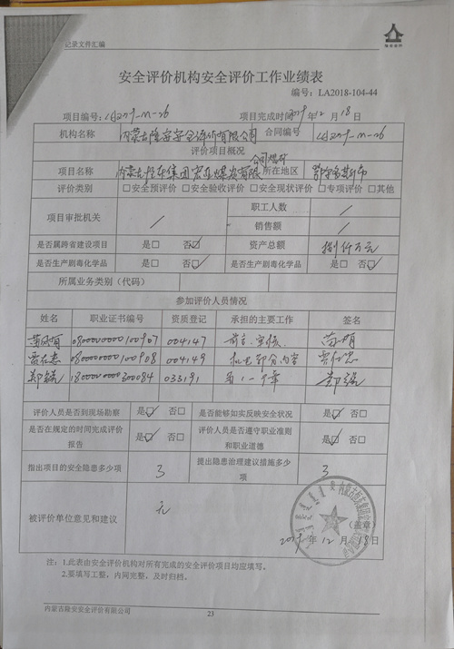本次評價認為:內蒙古恒東集團宏亞煤炭有限公司煤礦生產系統(tǒng)、輔助系統(tǒng)及其工藝和設備運行正常,符合《煤礦安全規(guī)定》和國家有關標準要求;在井田范圍內無其他工程,在開采過程中無超層越界現(xiàn)象;安全措施機制和管理制度及各種安全措施能夠滿足安全生產需要,控制各種災害的措施全面有效,符合安全生產條件規(guī)定,具備安全生產條件。