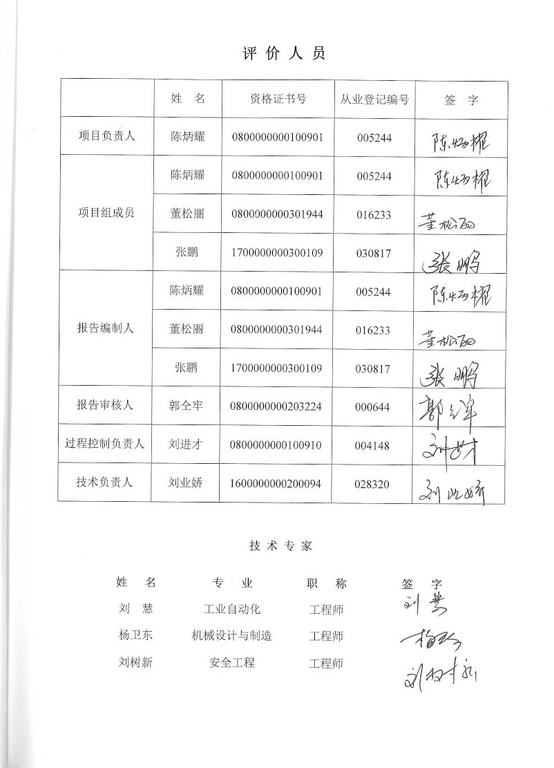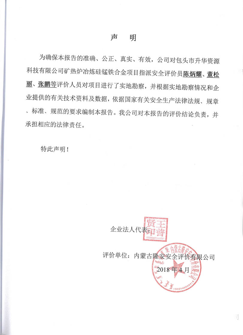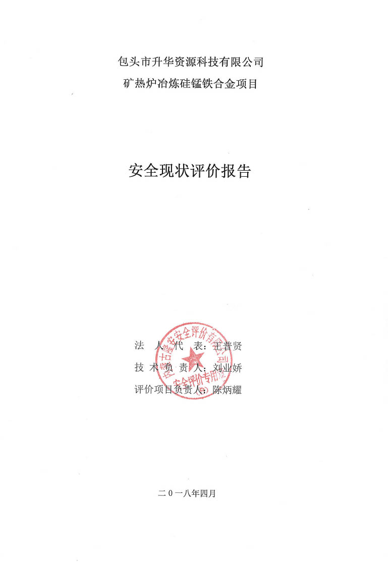 包頭市升華資源科技有限公司礦熱爐冶煉硅錳鐵合金項目安全現(xiàn)狀評價報告–簽字表