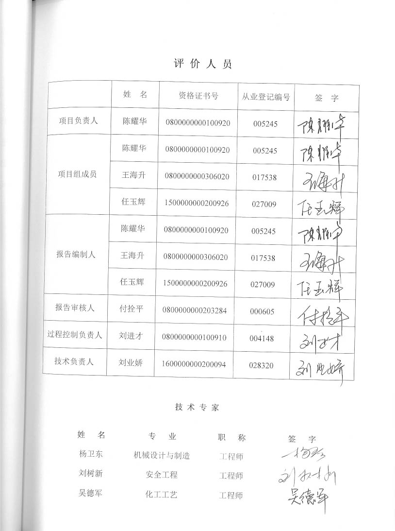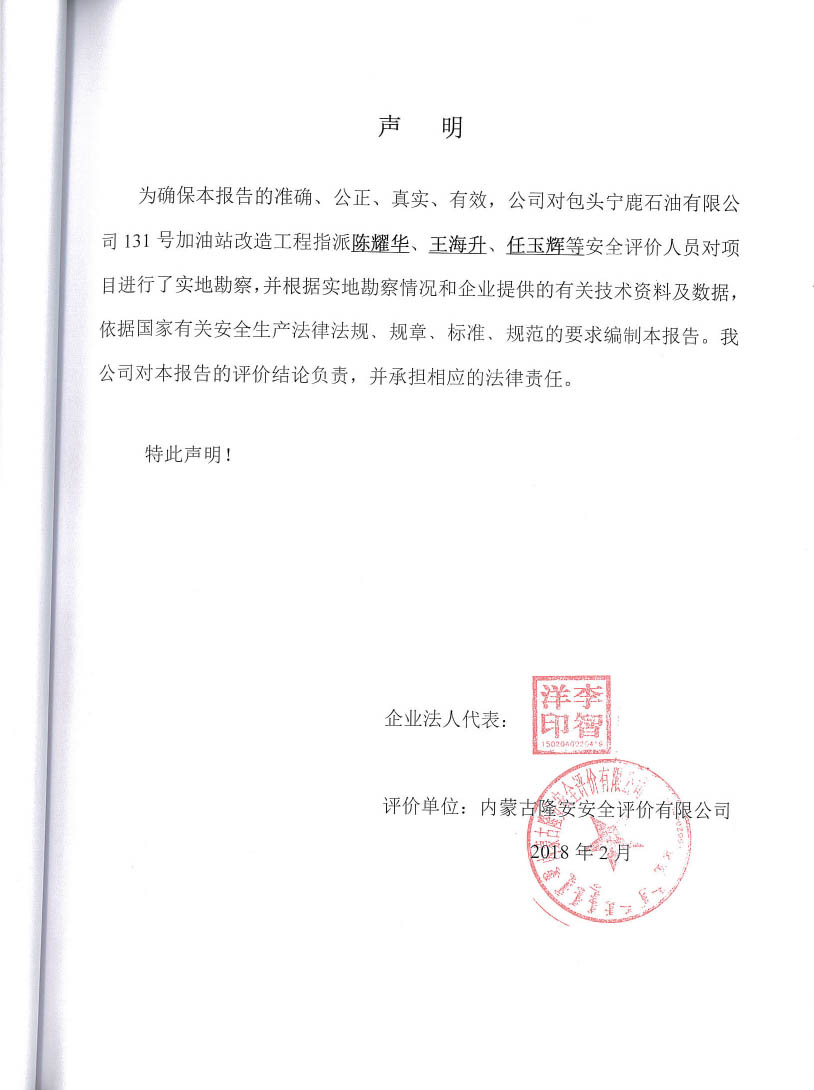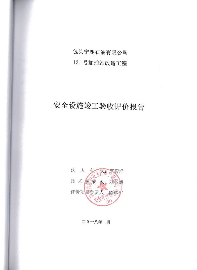 包頭寧鹿石油有限公司131號加油站改造工程安全設(shè)施竣工驗收評價報告–簽字表