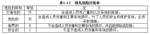 按危險、有害因素導致的事故、有害的危險(危害)程度,將危險有害因素危險程度劃分為四個危險等級,如表1-4-2所示。