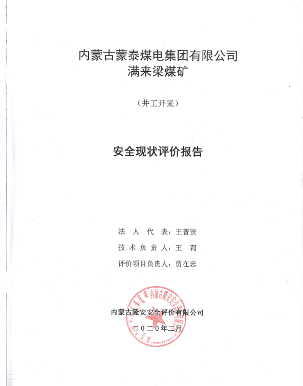 本次評價認(rèn)為:內(nèi)蒙古蒙泰煤電集團(tuán)有限公司滿來梁煤礦的安全管理以及生產(chǎn)系統(tǒng)、輔助系統(tǒng)及其工藝和設(shè)備運(yùn)行正常,符合《煤礦安全規(guī)程》、《煤礦整體托管安全管理辦法(試行)》和國家有關(guān)標(biāo)準(zhǔn)要求;煤礦在井田范圍內(nèi)無其他工程,在開采過程中無超層越界現(xiàn)象;安全措施機(jī)制和管理制度及各種安全措施能夠滿足安全生產(chǎn)需要,控制各種災(zāi)害的措施全面有效,符合安全生產(chǎn)條件規(guī)定,具備安全生產(chǎn)條件。
