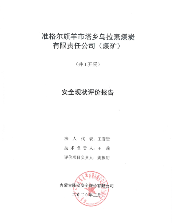 準(zhǔn)格爾旗羊市塔鄉(xiāng)烏拉素煤炭有限責(zé)任公司(煤礦)行政區(qū)劃隸屬鄂爾多斯市準(zhǔn)格爾納日松鎮(zhèn)管轄,公司性質(zhì)為有限責(zé)任公司。 烏拉素煤礦于2017年8月23日由內(nèi)蒙古自治區(qū)國土資源廳頒發(fā)了《采礦許可證》,2017年5月3日延續(xù)了《安全生產(chǎn)許可證》,該礦至今安全生產(chǎn)狀況良好。