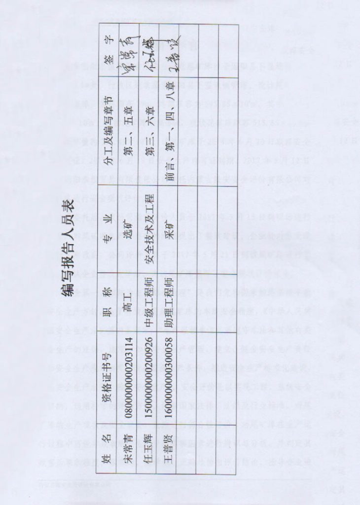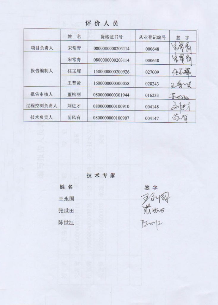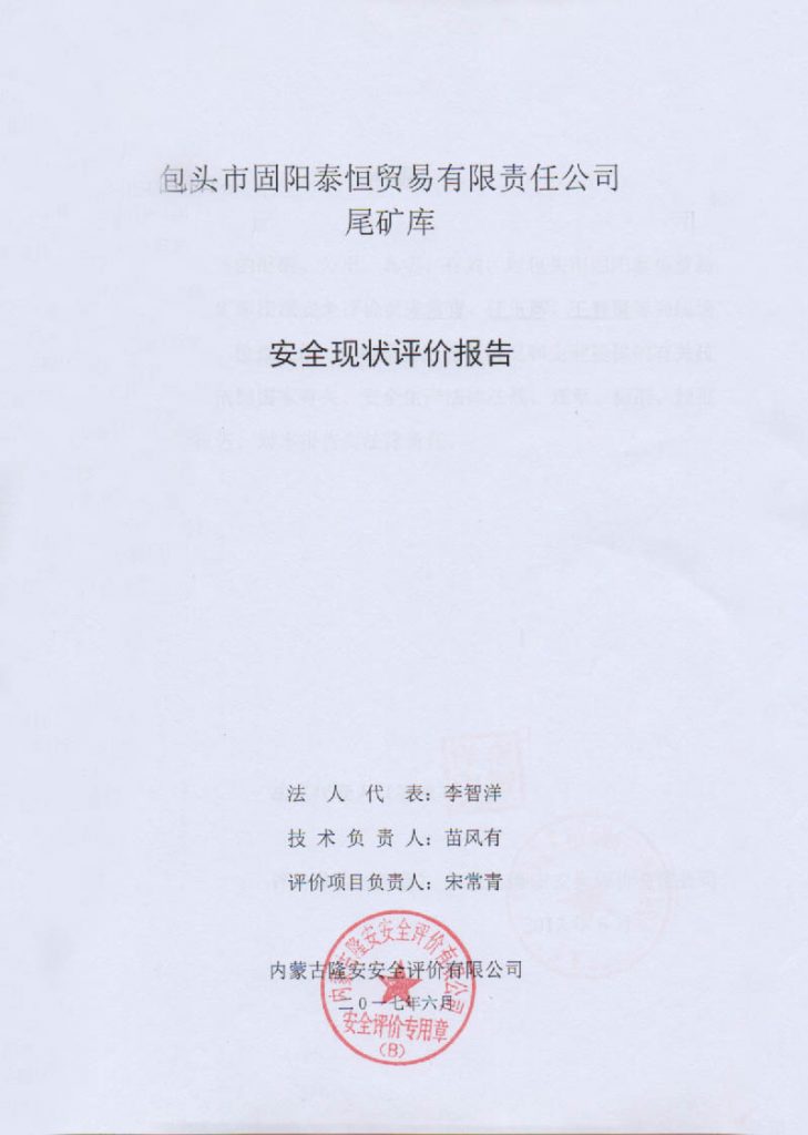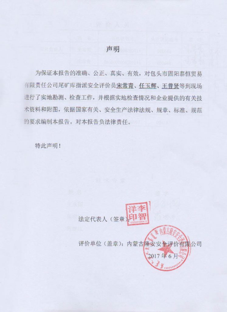 包頭市固陽泰恒貿易有限責任公司尾礦庫安全現狀評價報告–簽字表