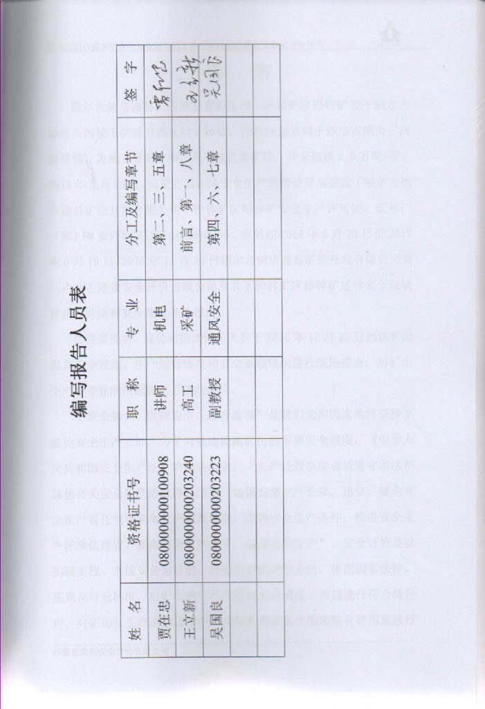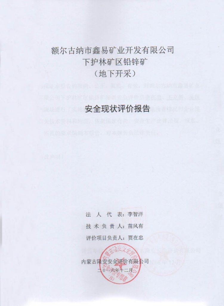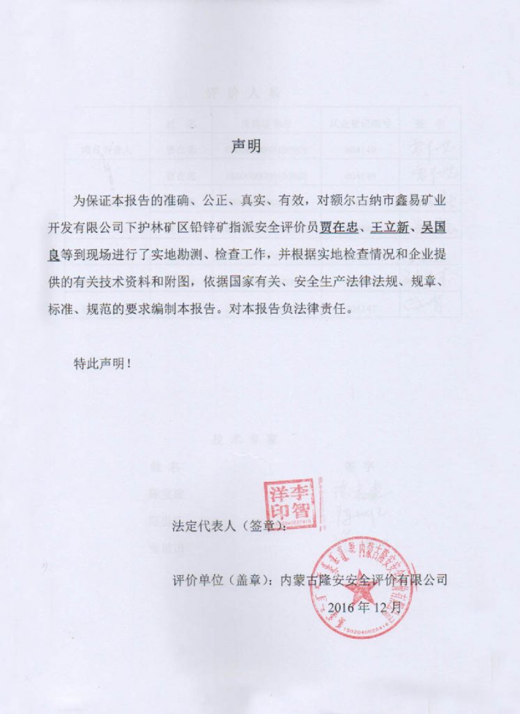 額爾古納市鑫易礦業(yè)開發(fā)有限公司下護(hù)林礦區(qū)鉛鋅礦安全現(xiàn)狀評價(jià)報(bào)告 –簽字表