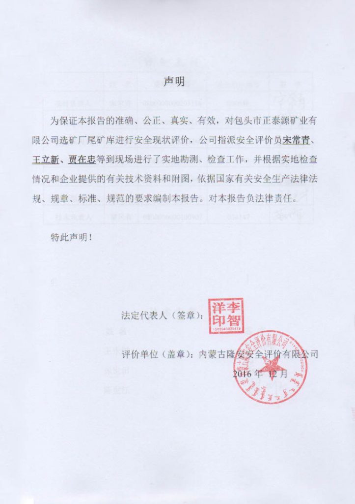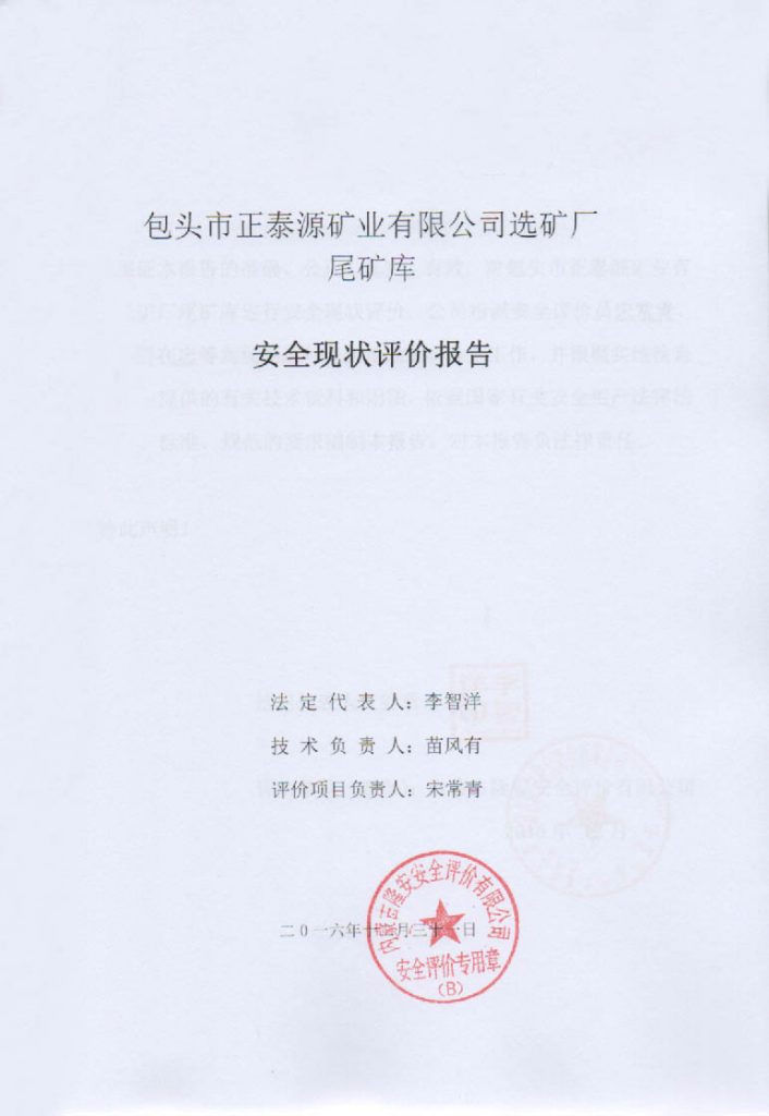 頭市正泰源礦業(yè)有限公司選礦廠尾礦庫安全現(xiàn)狀評(píng)價(jià)報(bào)告–簽字表