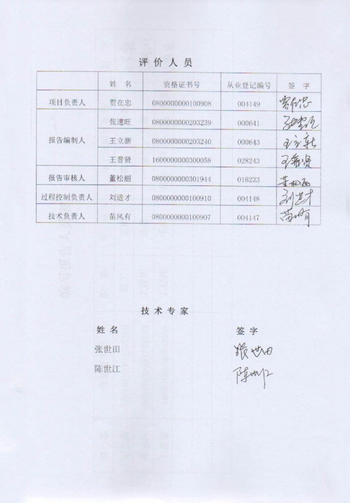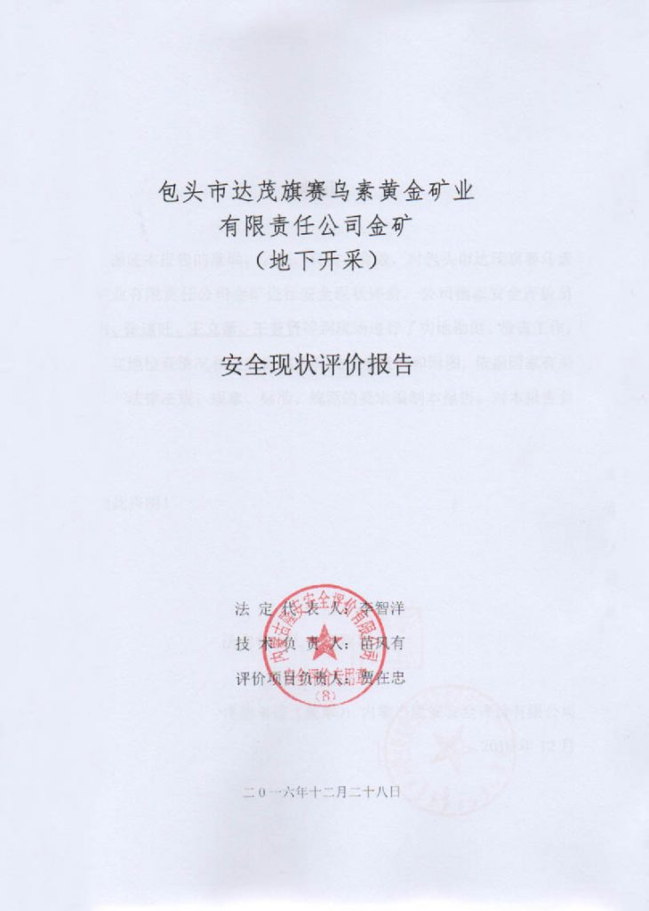 包頭市達(dá)茂旗賽烏素黃金礦業(yè)有限責(zé)任公司金礦安全現(xiàn)狀評價(jià)報(bào)告–簽字表