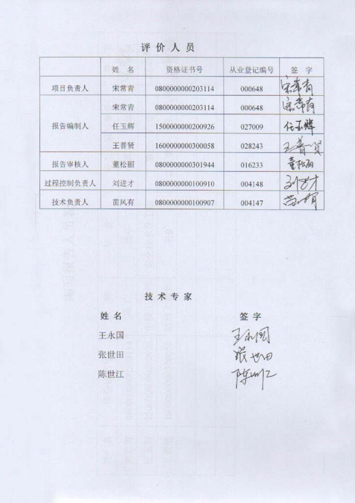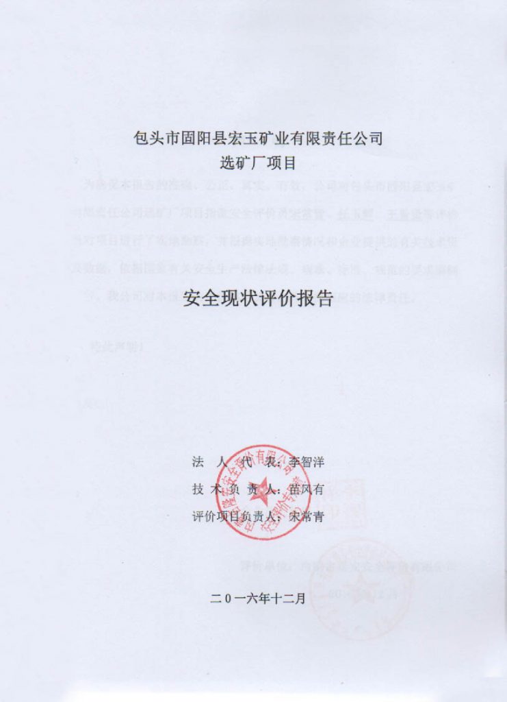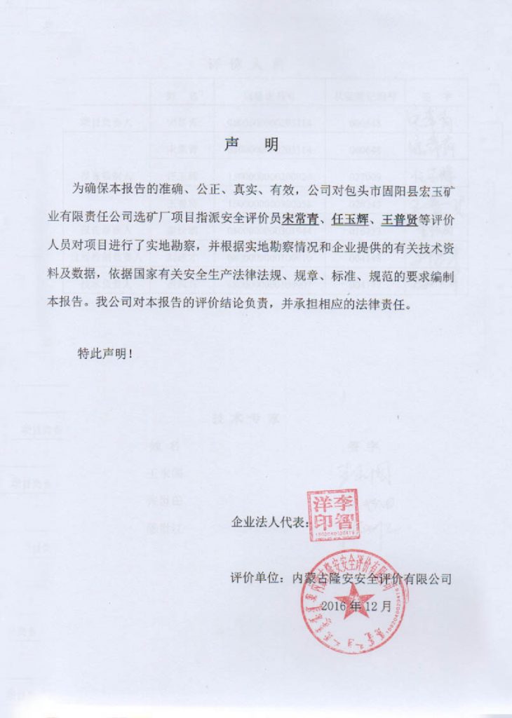 包頭市固陽縣宏玉礦業(yè)有限責任公司選礦廠項目安全現(xiàn)狀評價報告–簽字表