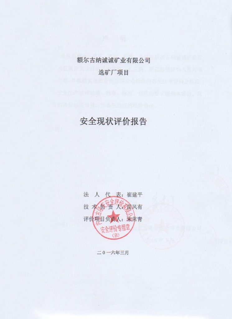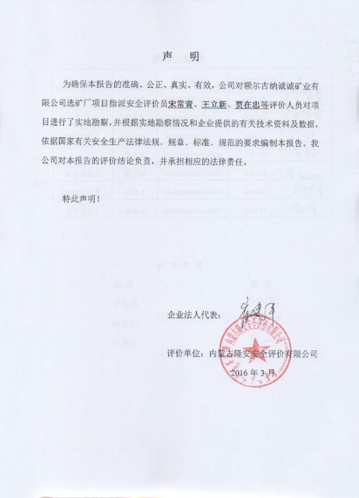 額爾古納誠(chéng)誠(chéng)礦業(yè)有限公司選礦廠項(xiàng)目安全現(xiàn)狀評(píng)價(jià)報(bào)告–簽字表