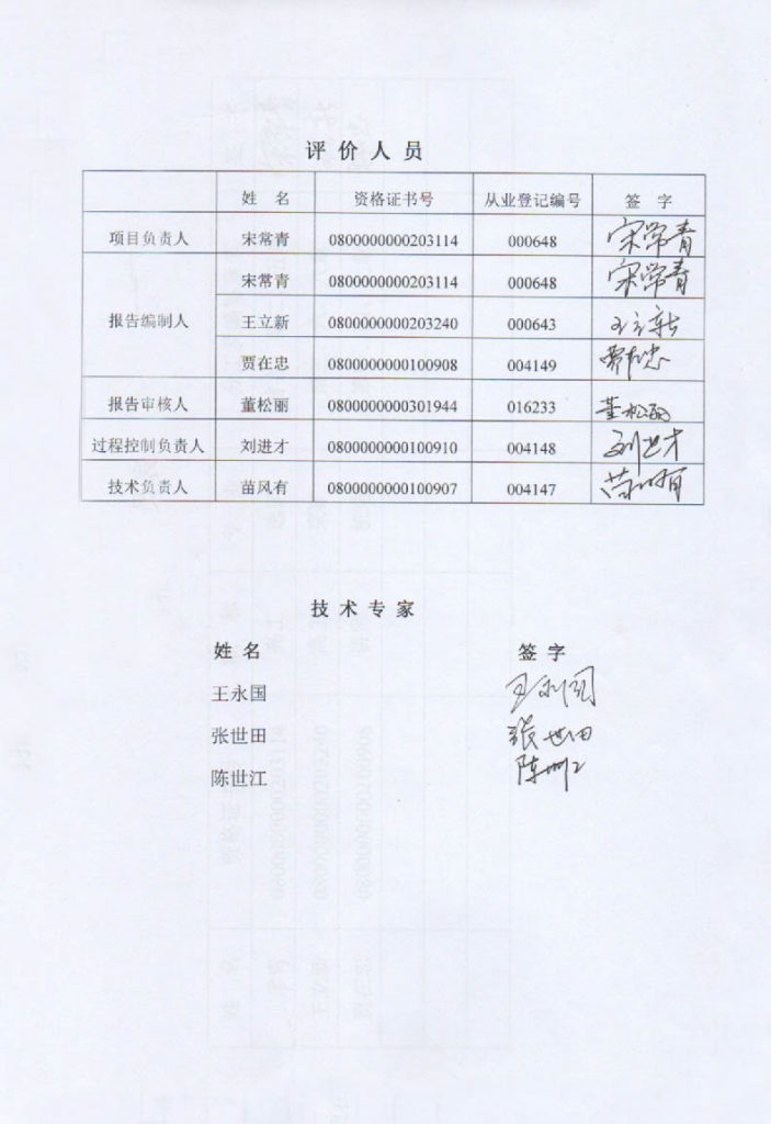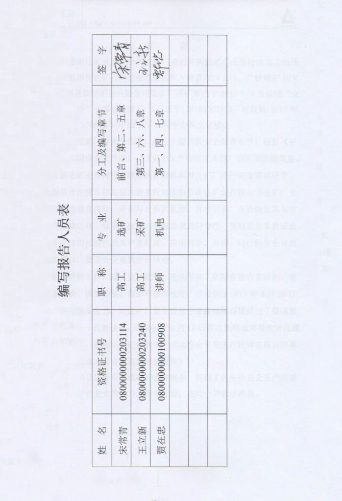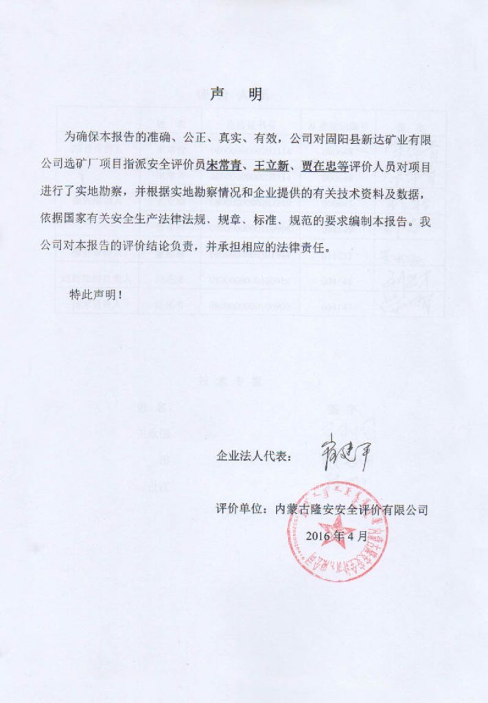 固陽縣新達(dá)礦業(yè)有限公司選礦廠項(xiàng)目安全現(xiàn)狀評價(jià)報(bào)告–簽字表