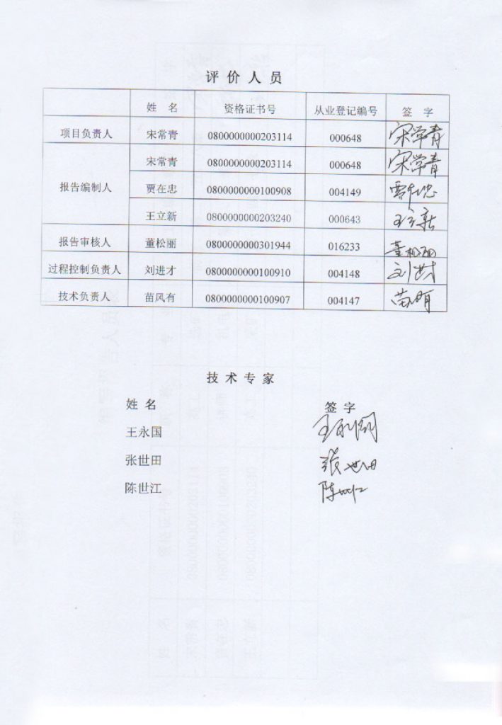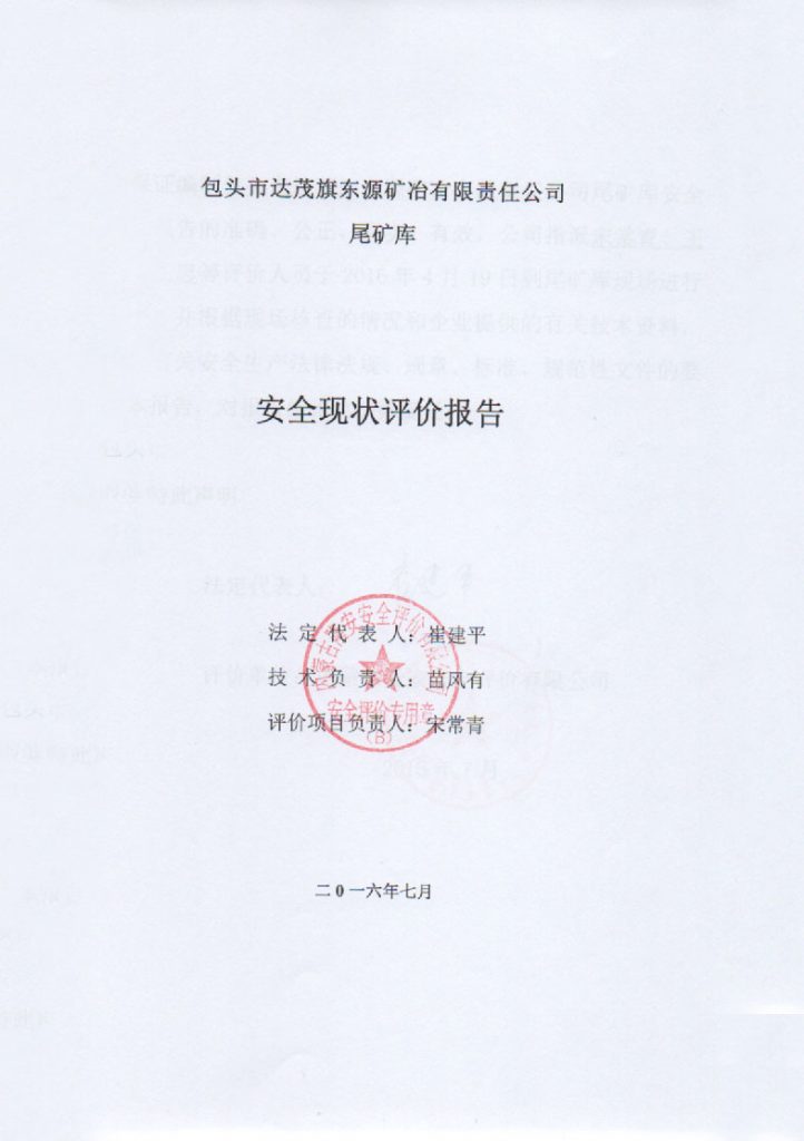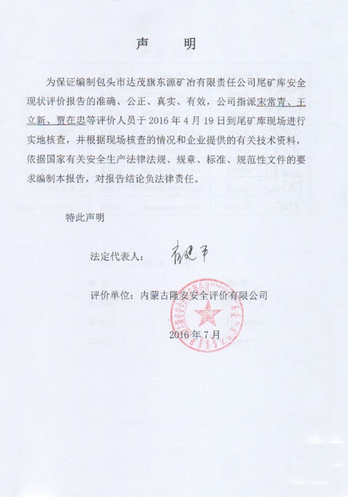 包頭市達(dá)茂旗東源礦冶有限責(zé)任公司尾礦庫安全現(xiàn)狀評(píng)價(jià)報(bào)告–簽字表
