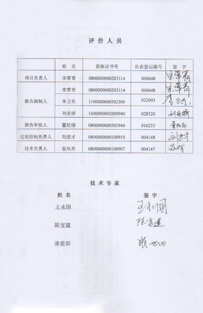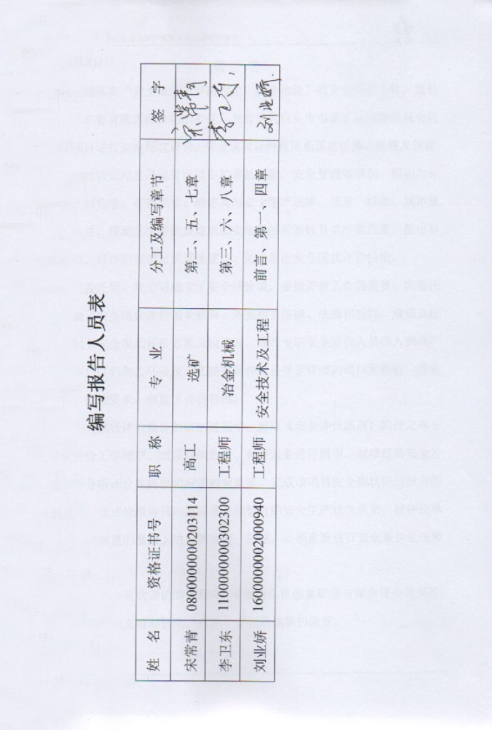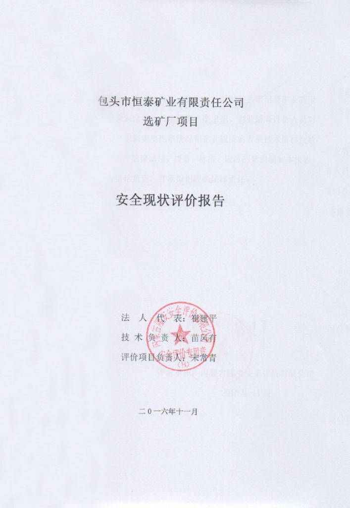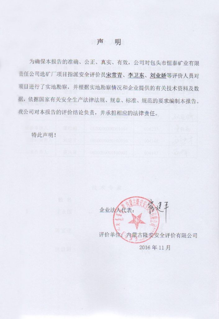 包頭市恒泰礦業(yè)有限責(zé)任公司選礦廠項目安全現(xiàn)狀評價報告–簽字表