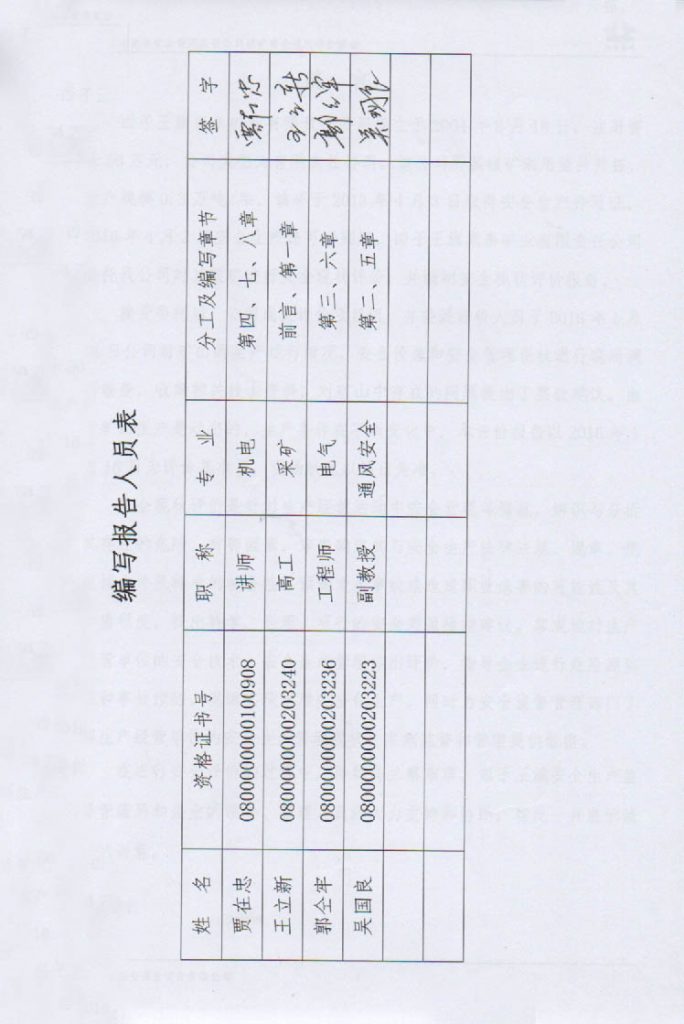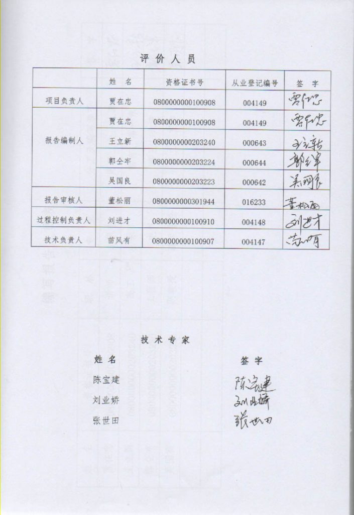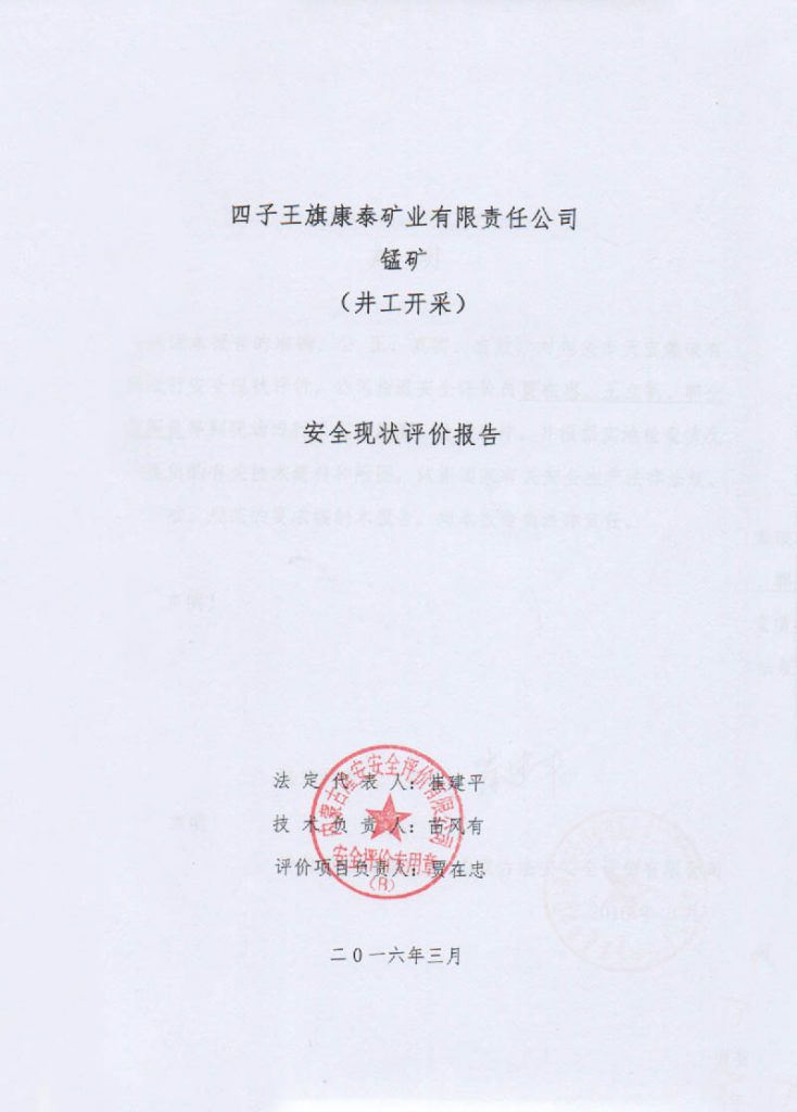 四子王旗康泰礦業(yè)有限責(zé)任公司錳礦安全現(xiàn)狀評價(jià)報(bào)告–簽字表